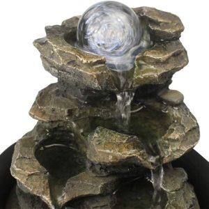 BBabe Staggered Rock Cascading Fountain 11″, 5-Tiered Feng Shui Rocky Water Falls Tabletop Water Fountain with LED Lights for Home Office Decor