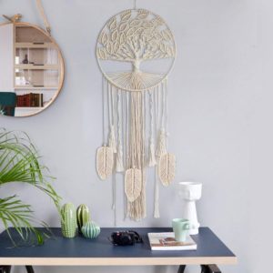 O-heart Boho Tree of Life Dream Catcher, Macrame Wall Hanging Dreamcatcher with Feather Leaf Big Woven Bohemian Dream Catchers for Wedding Party Favor Bedroom Nursery Gypsy Decor