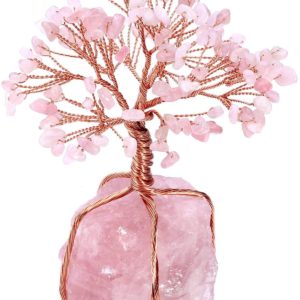 Top Plaza Chakra Healing Crystals Copper Money Tree Wrapped On Natural Rose Quartz Base Feng Shui Luck Figurine