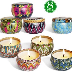 YIHANG Scented Candles Gift Sets, Natural Soy Wax 2.5 Oz Unit Portable Travel Tin Perfect for Women Aromatherapy Anniversary – 8 Pack