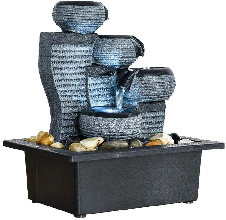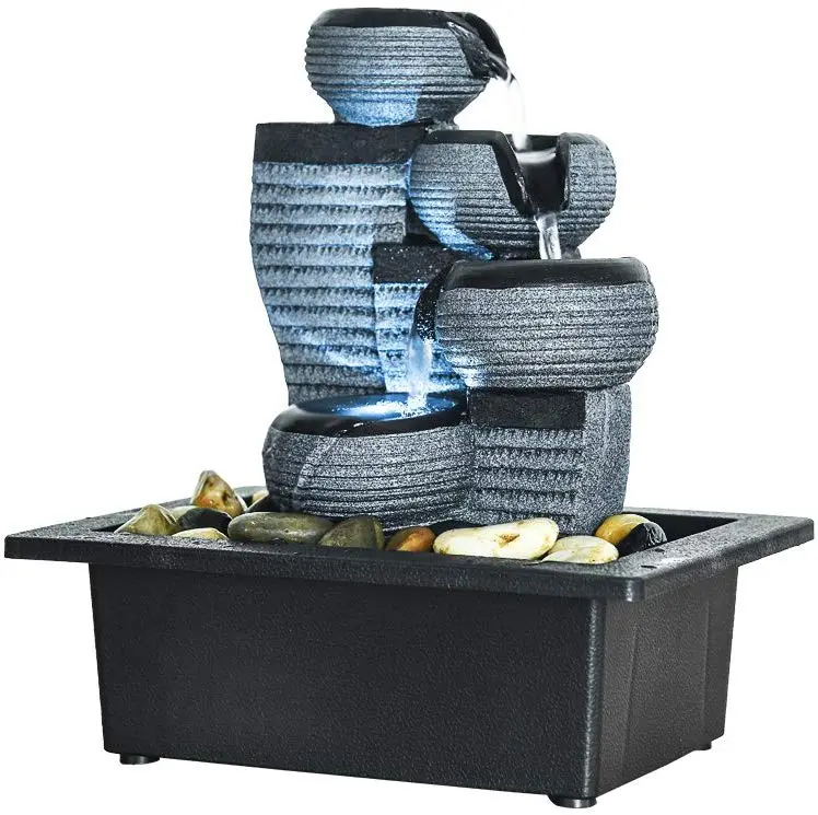 • SunJet mini tabletop water fountain provides soothing relaxation and tranquility. Listen to the sounds of a water cascade crashing down onto the tiers below as they gently rock you to sleep or bring you a comforting stress relief.