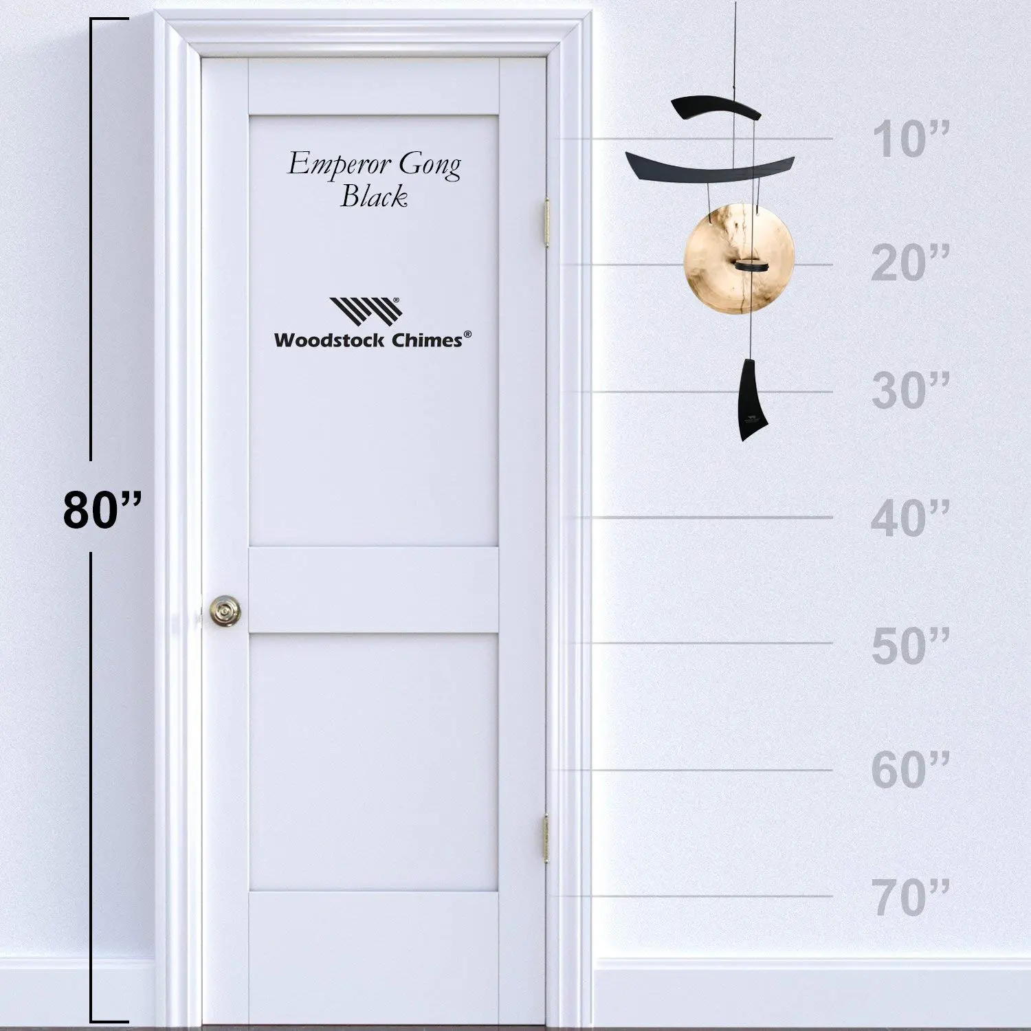 • Length: 34″ Gong diameter: 10″ Overall length is measured from top of gong to bottom of wind catcher